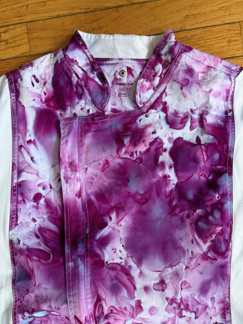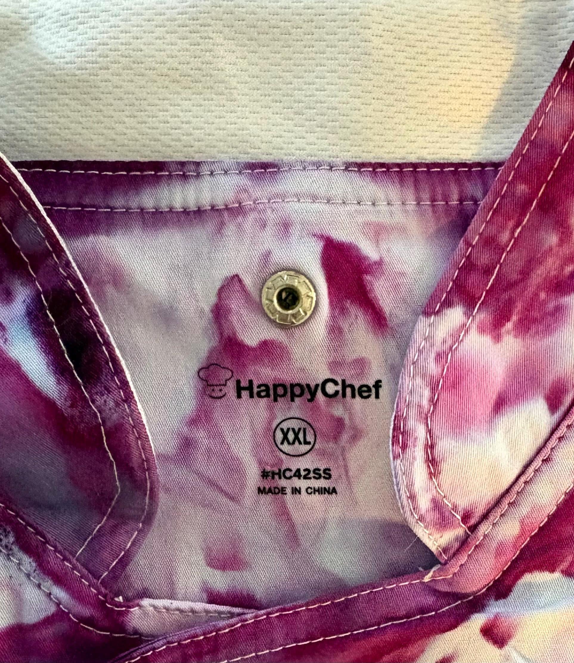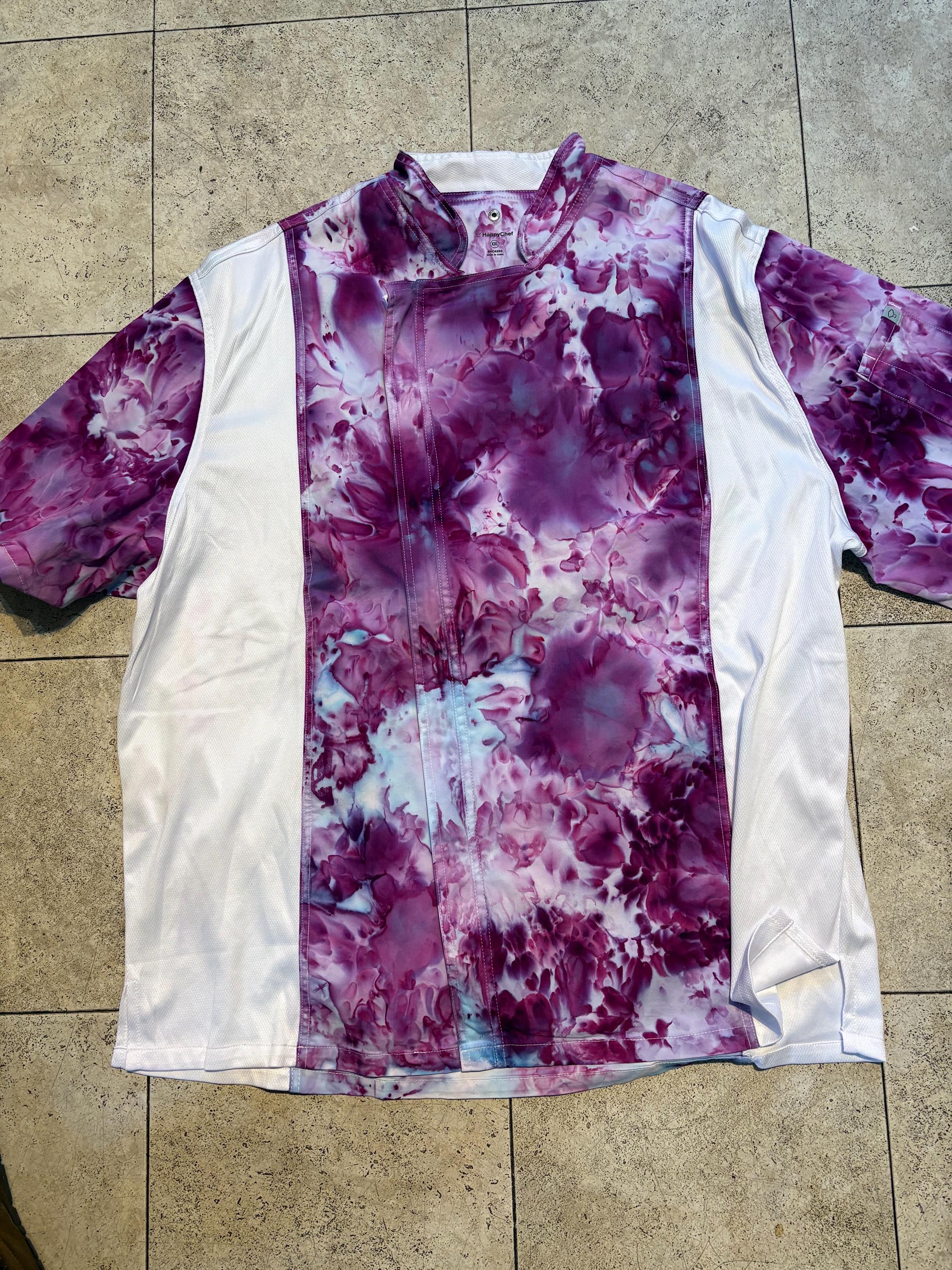 READY TO SHIP! No wait time. For the funky professional or home cook you'll love this size 2 XL, short sleeve chef coat with cloth covered buttons and a thermometer sleeve. Coat has a relaxed look with a roomy fit and side vents to keep you cooler. The fabric is soft cotton . FREE USPS first class shipping on this item.